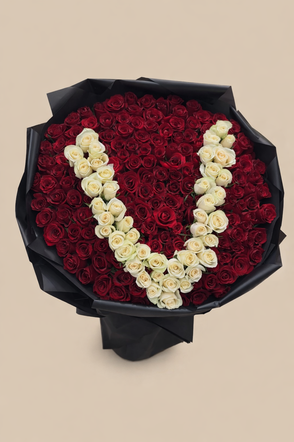 red roses bouquet comes in a letter of your choice