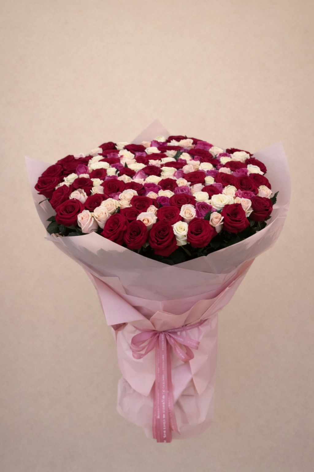 mix of red, white and pink roses bouquet comes in a large size