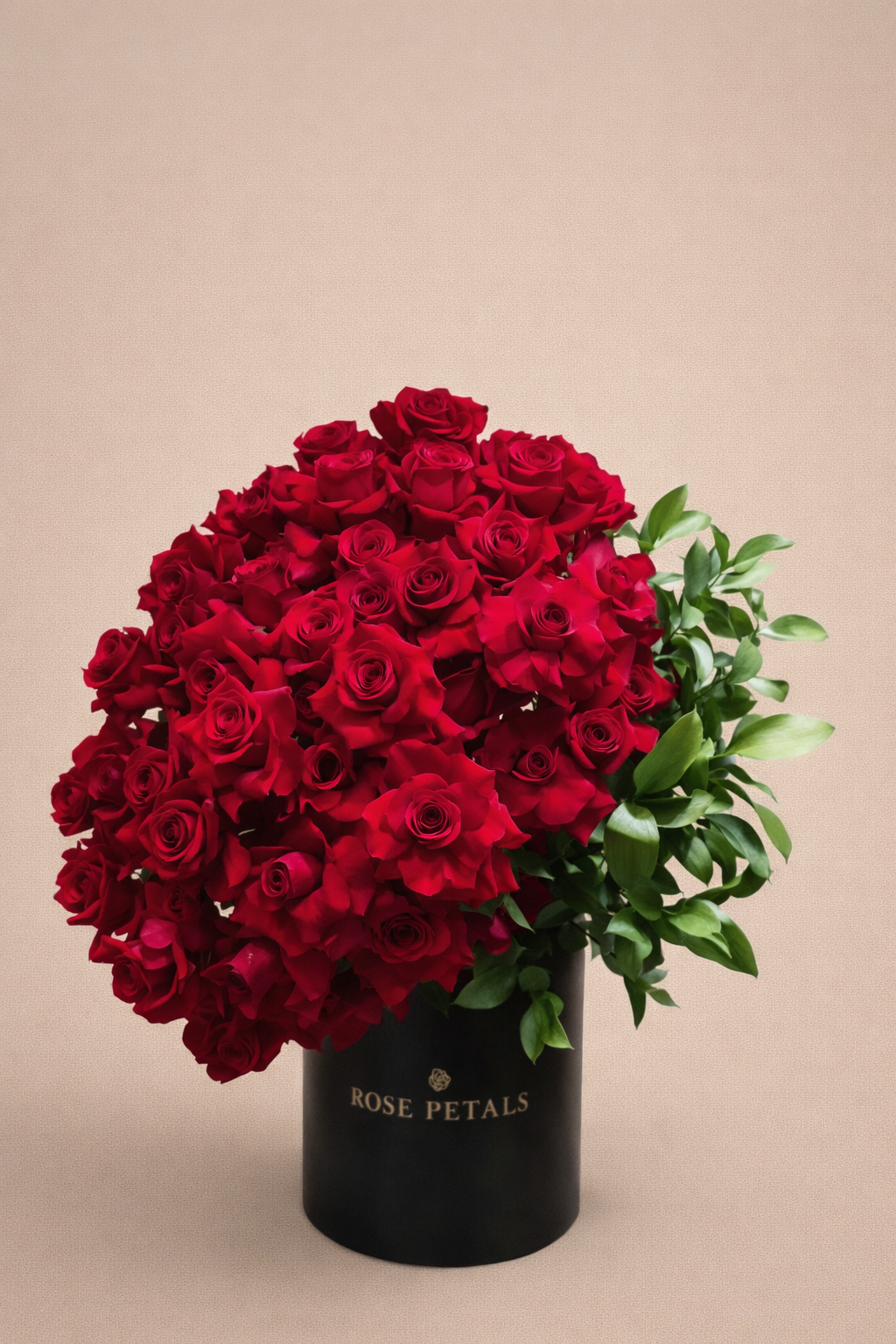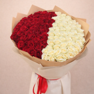 an arrangement of red roses with an open petals comes in a unique shape